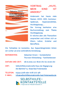 Vortrag "Hilfe, mein Kind ist anders!" ADHS, ADH, Autismus-Spektrum, HSP oder andere/sonstige Neurodivergenz als Verdacht oder Diagnose