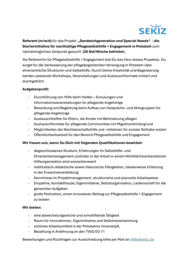 Wenn Sie sich für diese Stelle oder die Mitarbeit bzw. ehrenamtliches Engagement im Bereich der Selbsthilfe interessieren, sprechen Sie uns an:
